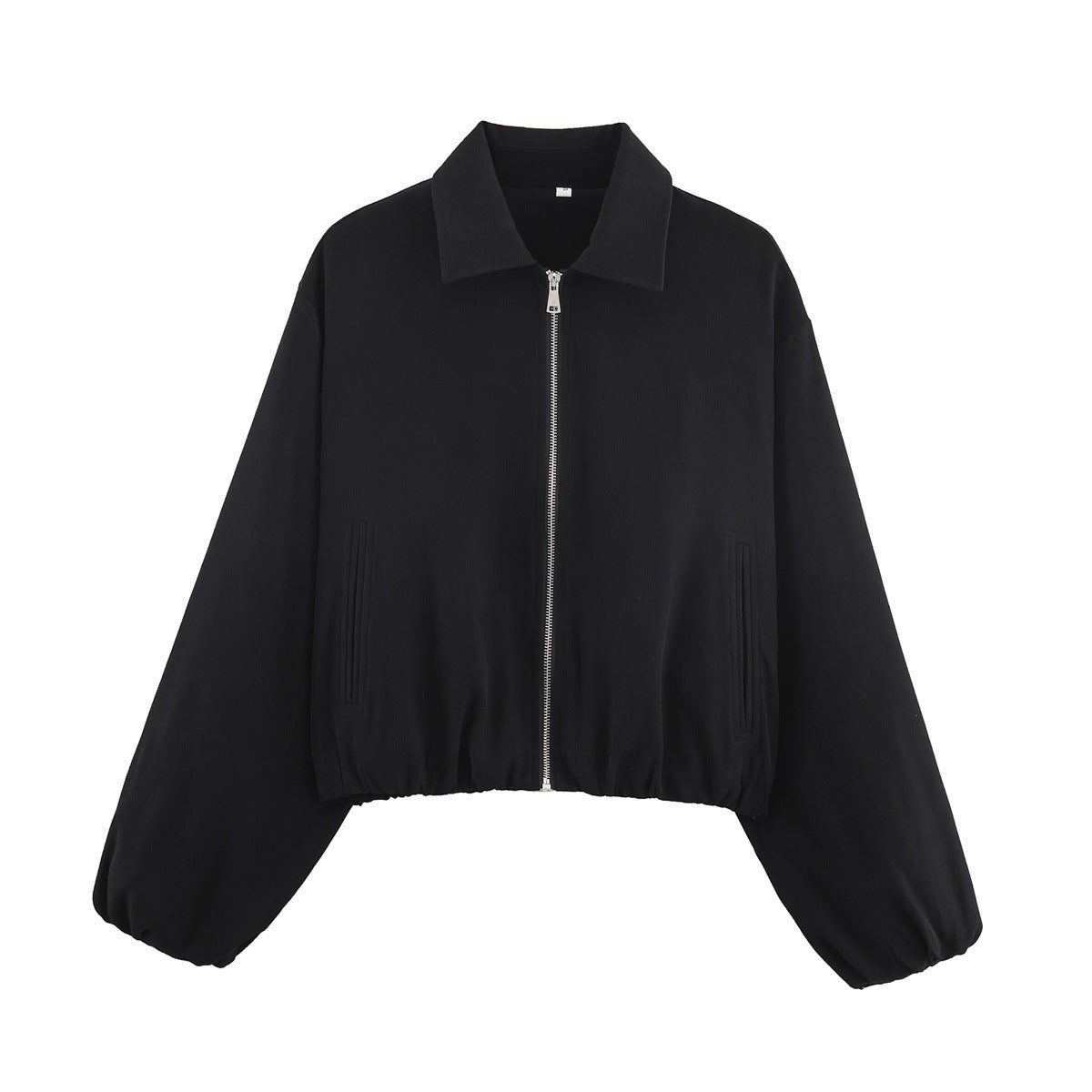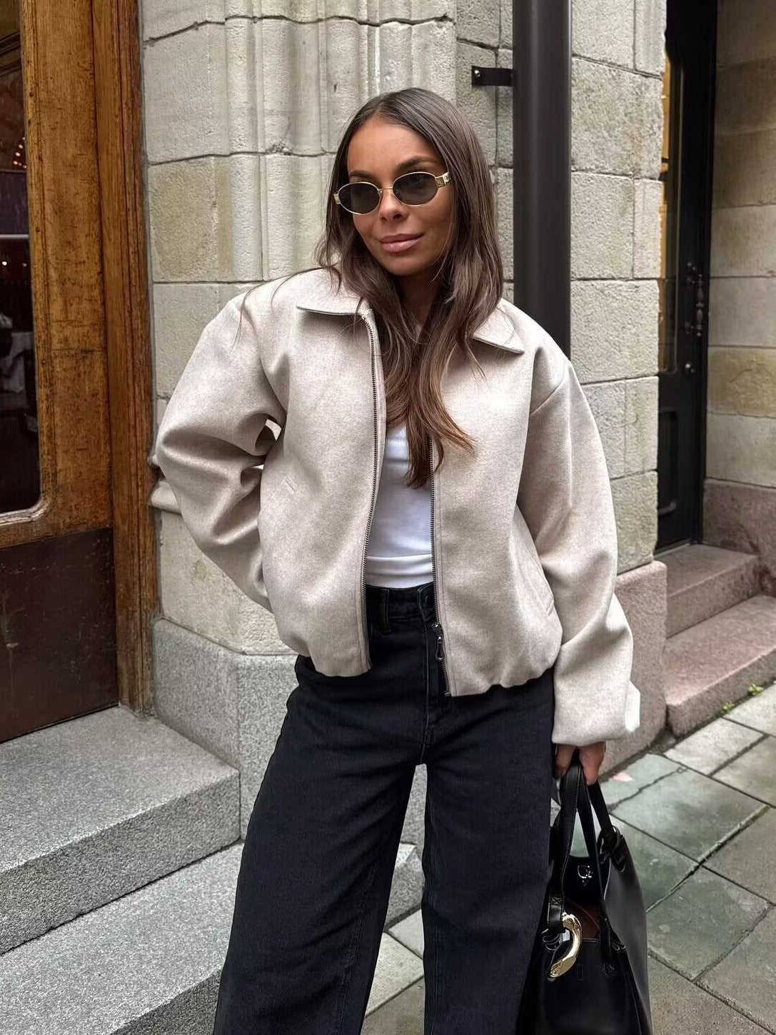 Damen lässige Blousonjacke mit elastischem Bund und praktischen Taschen Fudus
