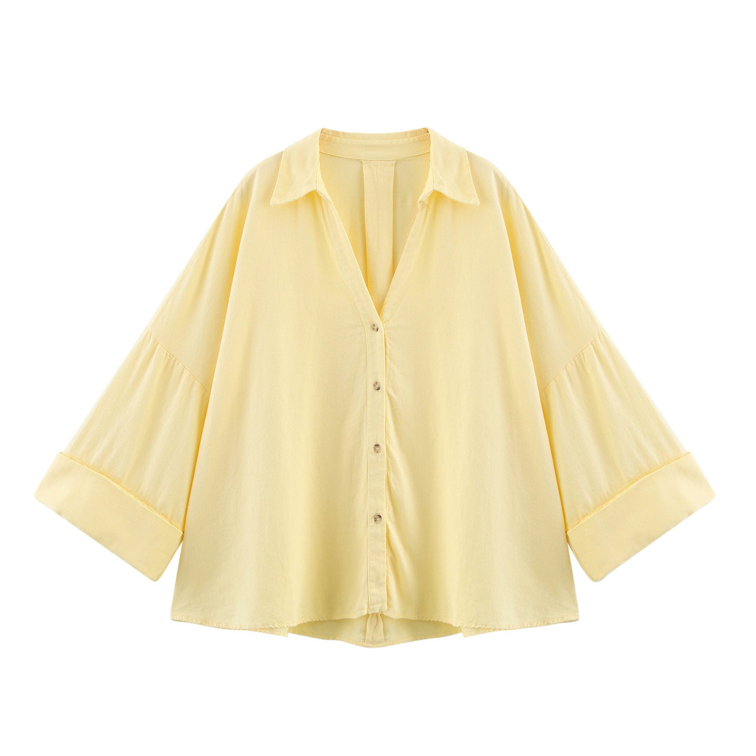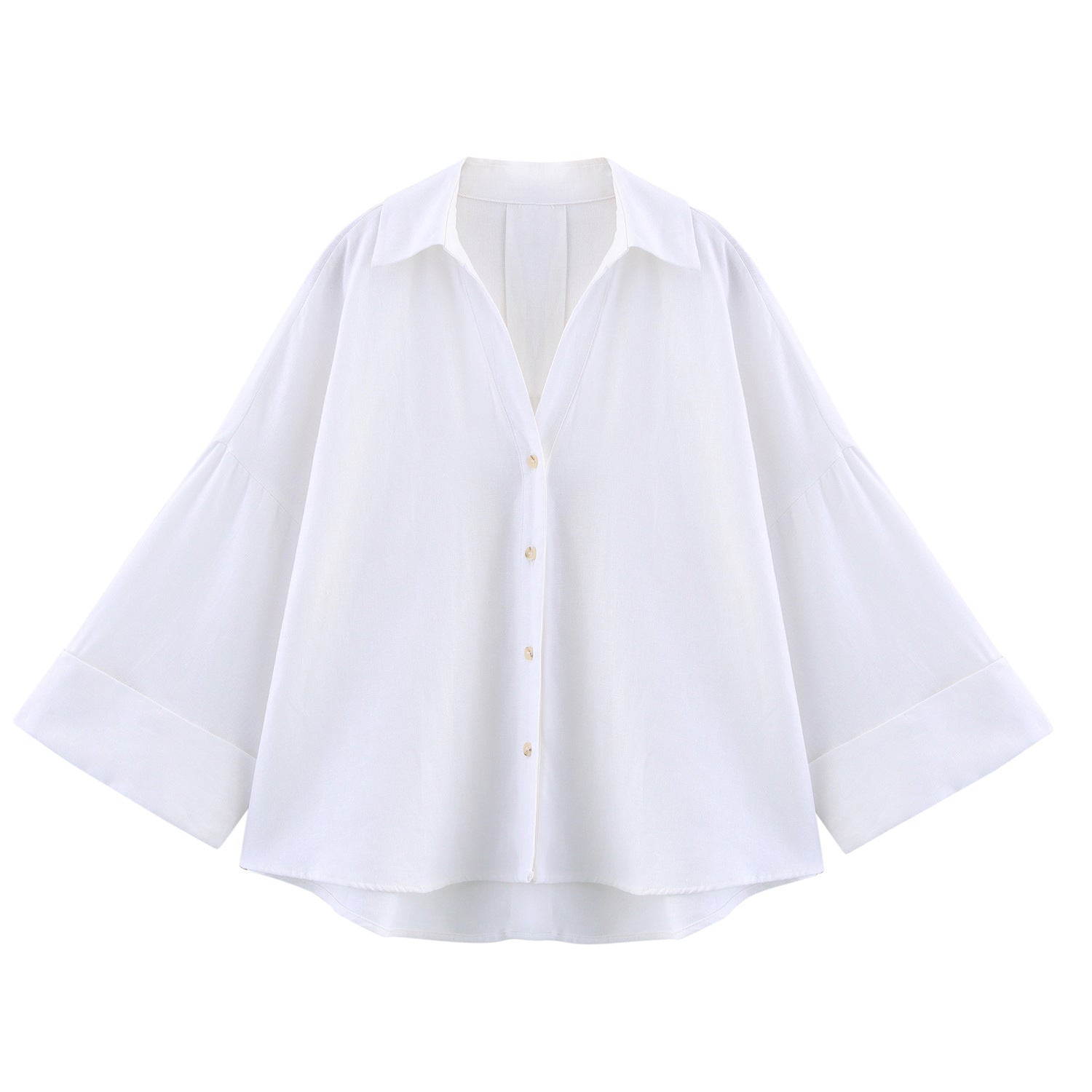 Damen lässige Bluse mit voluminösen Ärmeln und durchgehender Knopfleiste Fudus