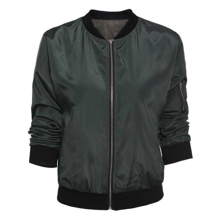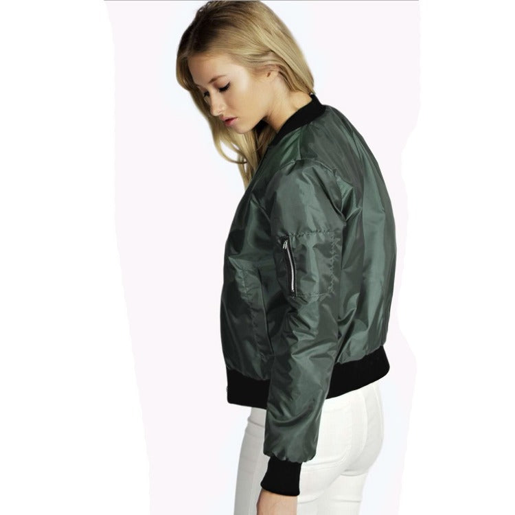 Damen lässige Bomberjacke mit elastischem Bund und seitlichen Taschen Fudus