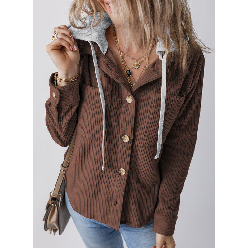 Damen lässige Hemdjacket mit Kapuze und seitlichen Taschen Fudus