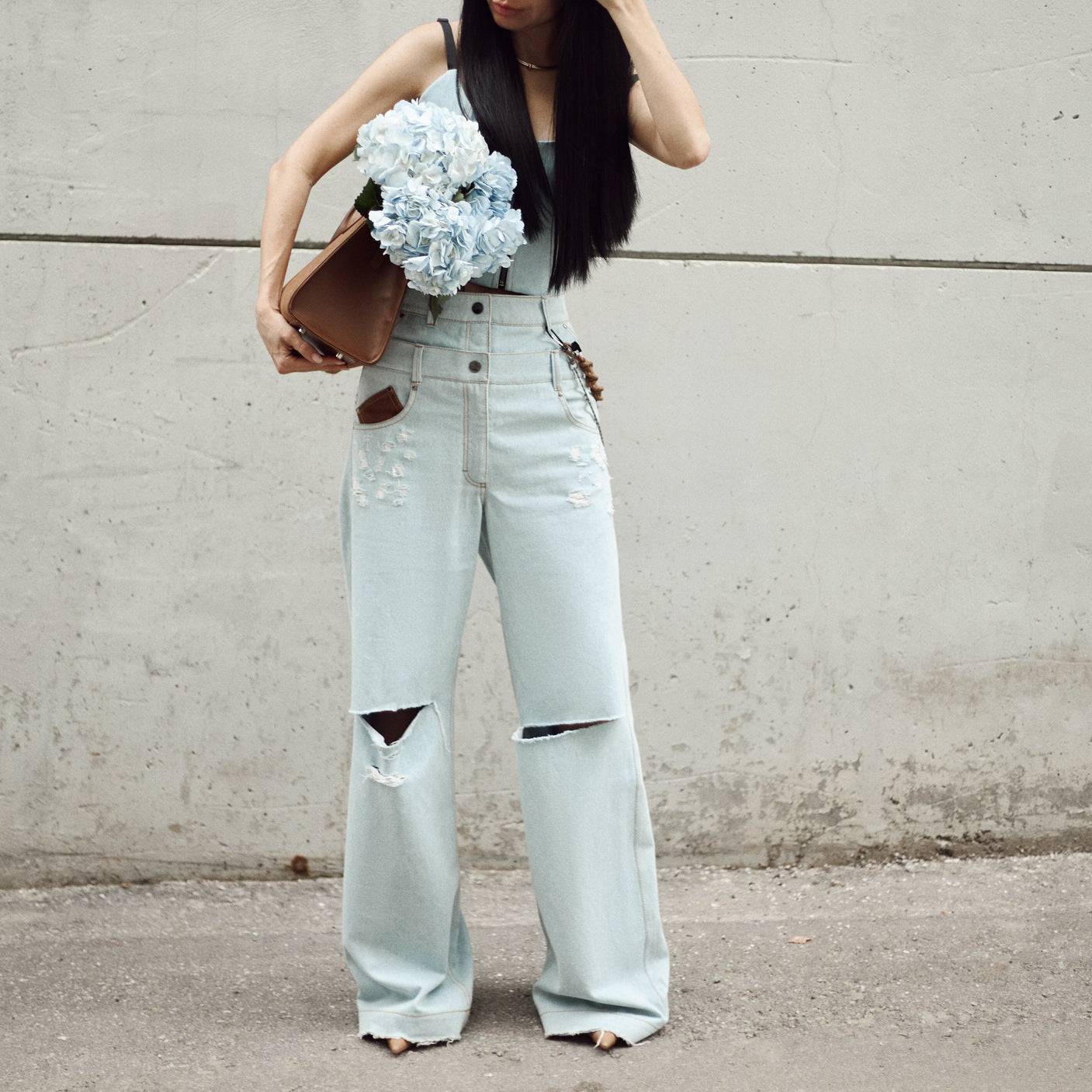 Damen lässige High-Waist Jeans mit einzigartigen Riss-Details und lockerer Passform Fudus