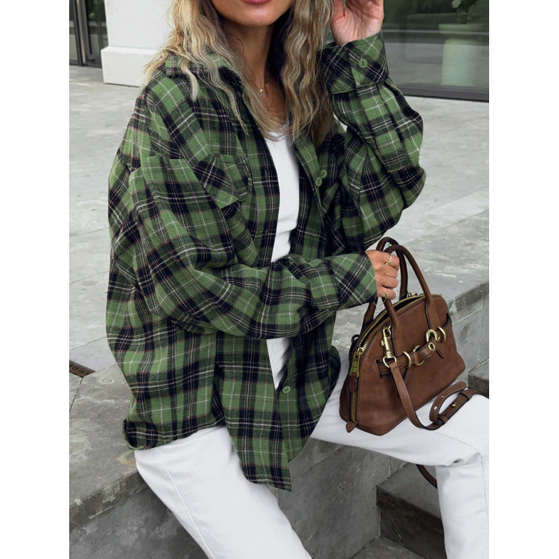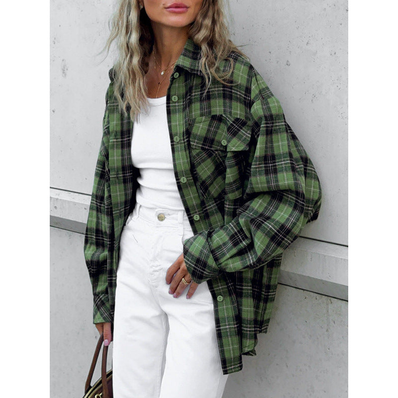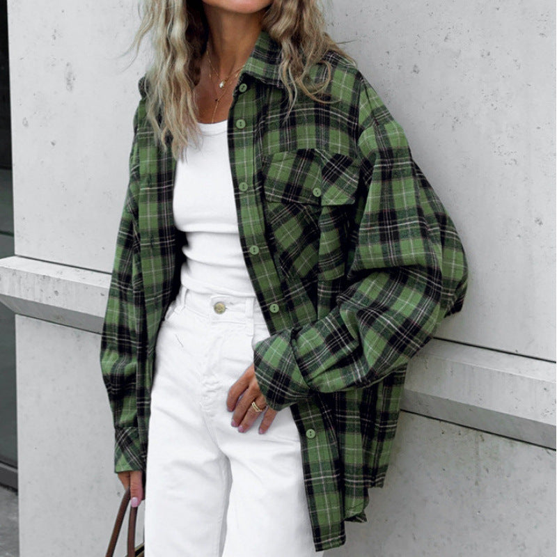 Damen lässige Karobluse mit übergroßem Schnitt Fudus