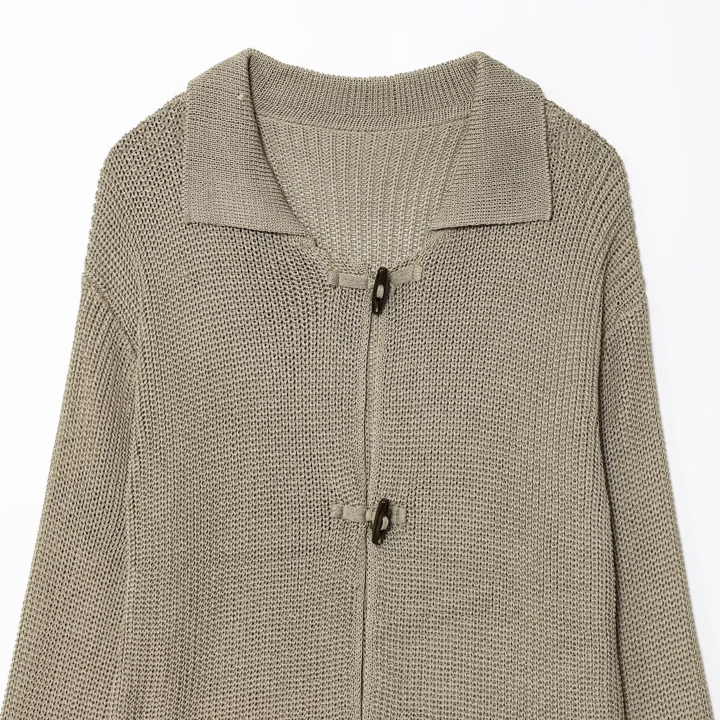Damen lässige Strickjacke mit elegantem Kragen und dekorativen Knöpfen Fudus
