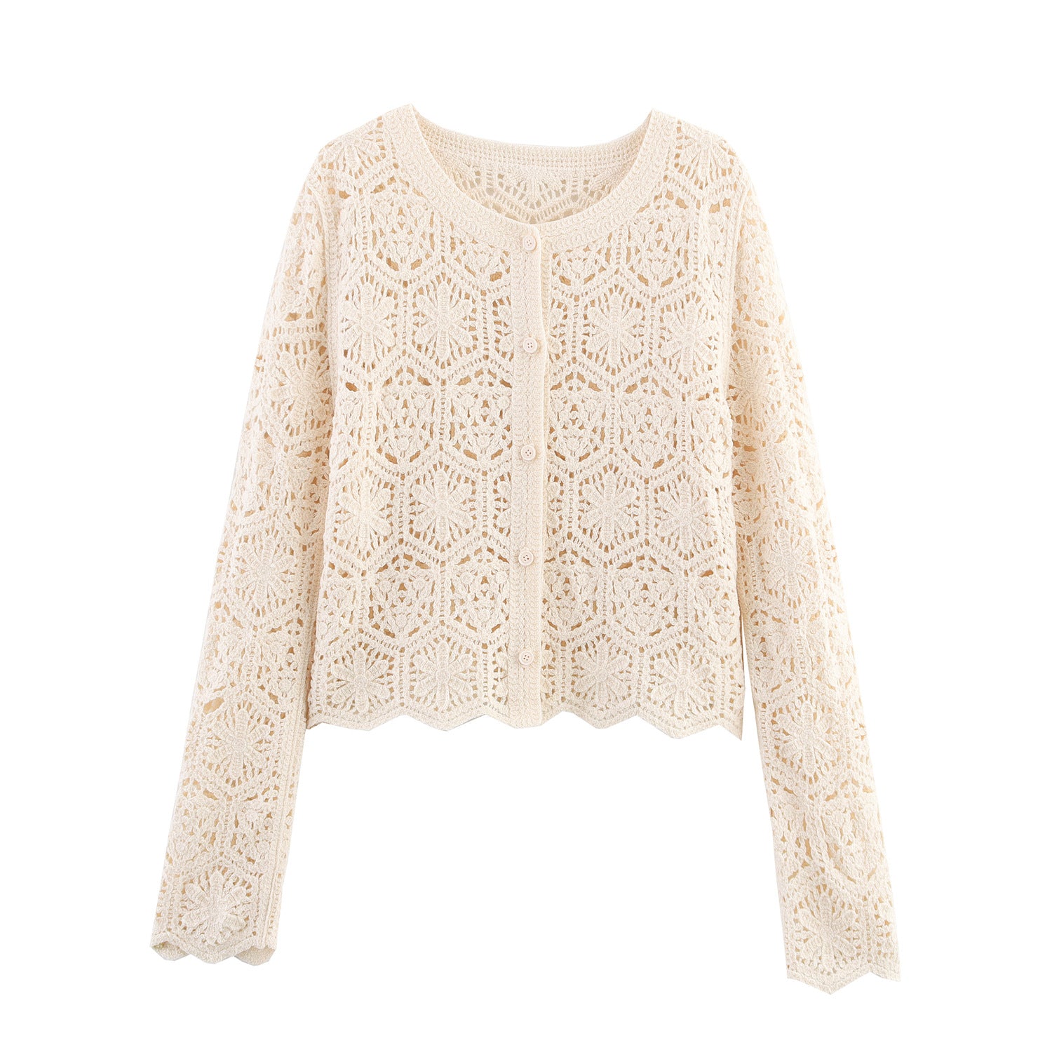 Entdecken Sie unsere Damen lässige Strickjacke, die mit ihrem floralen Lochmuster und der eleganten Knopfleiste einen Hauch von Feminität in jede Garderobe bringt. Diese Jacke aus hochwertigem Material sorgt nicht nur für Komfort, sondern bietet auch eine leichte Atmungsaktivität, ideal für Frühling und Sommer.
