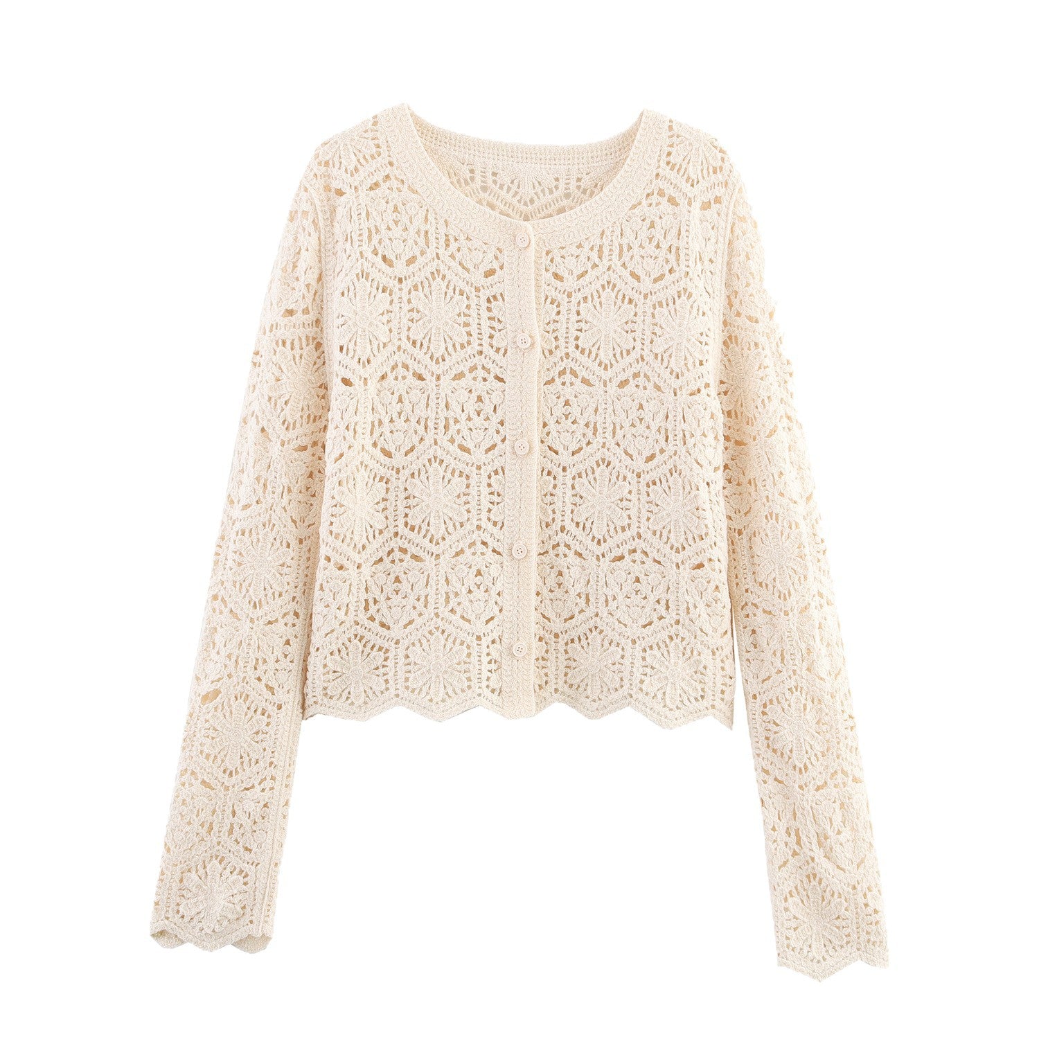 Damen lässige Strickjacke mit floralem Lochmuster und Knopfleiste Fudus