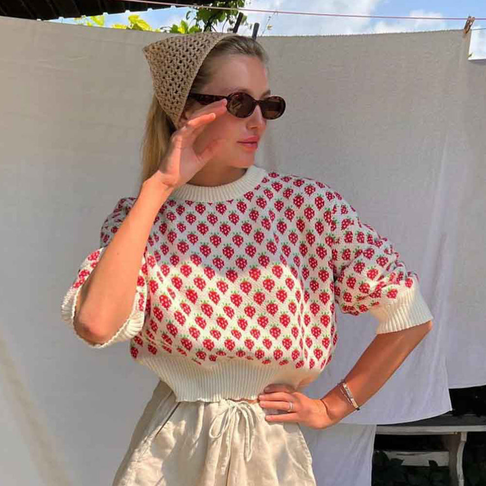 Damen modischer cropped Pullover mit floralem Muster Fudus