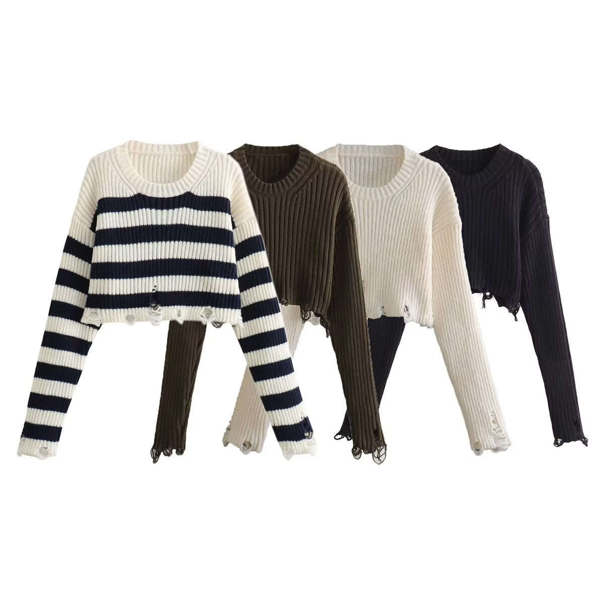 Damen modischer cropped Strickpullover Fudus