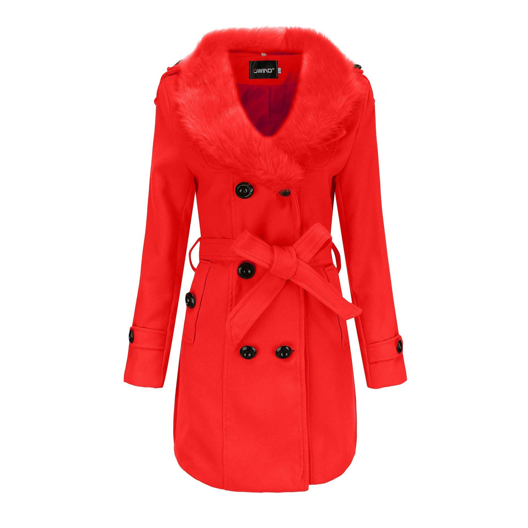 Damen modischer Mantel mit abnehmbarem Kunstfellkragen und eleganter Taillierung Fudus