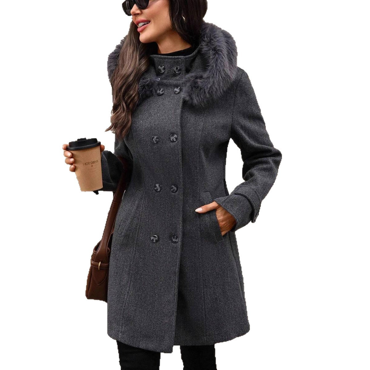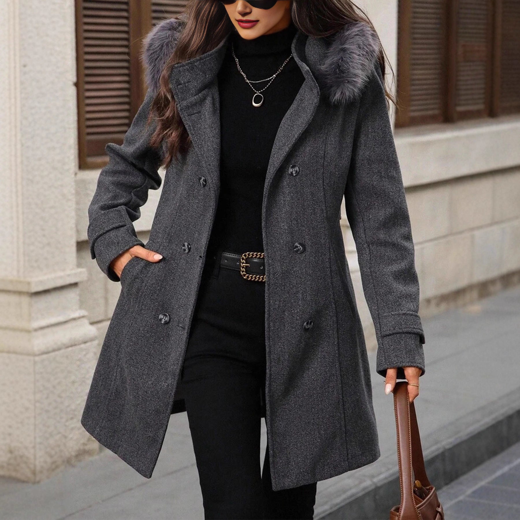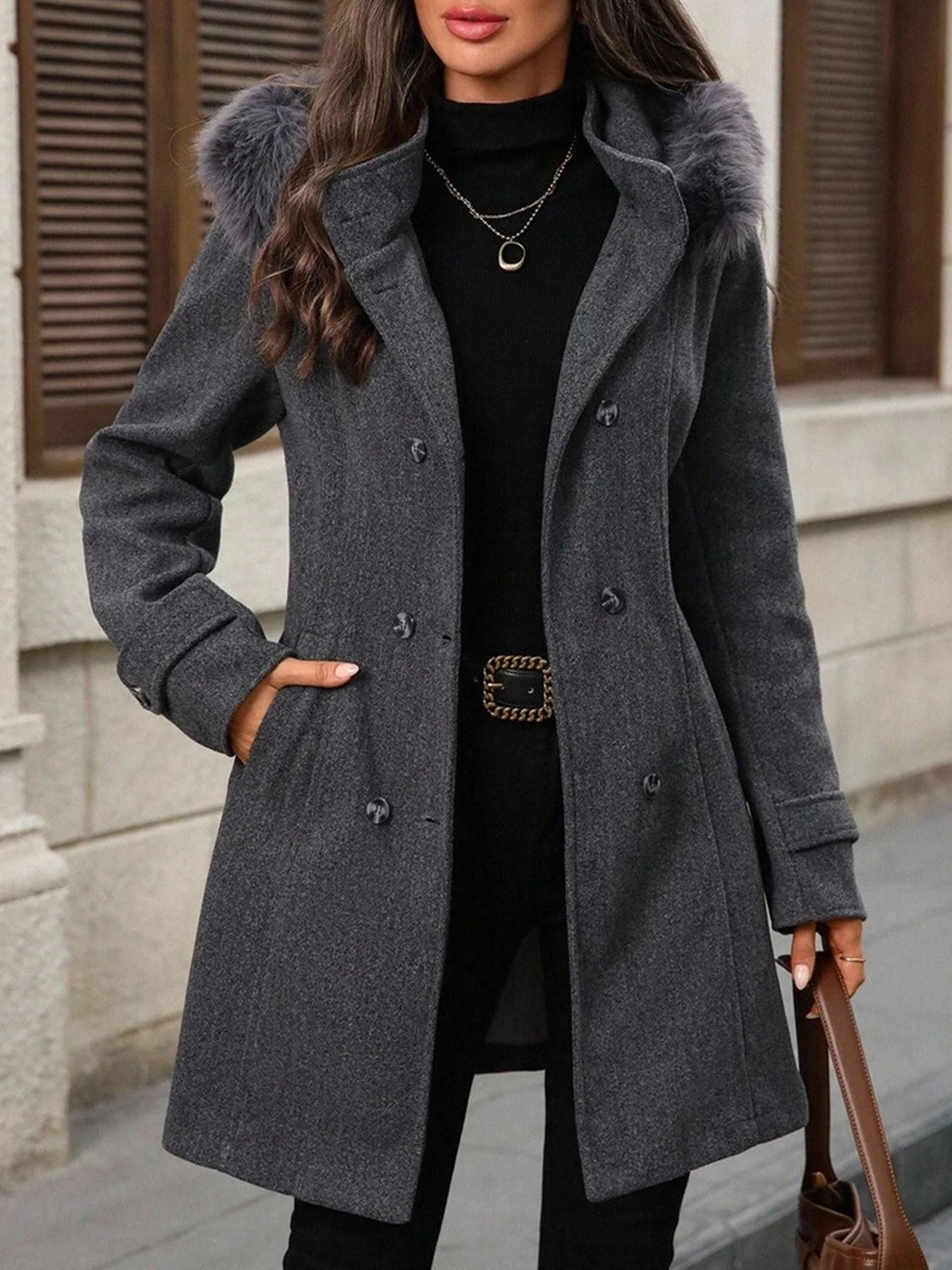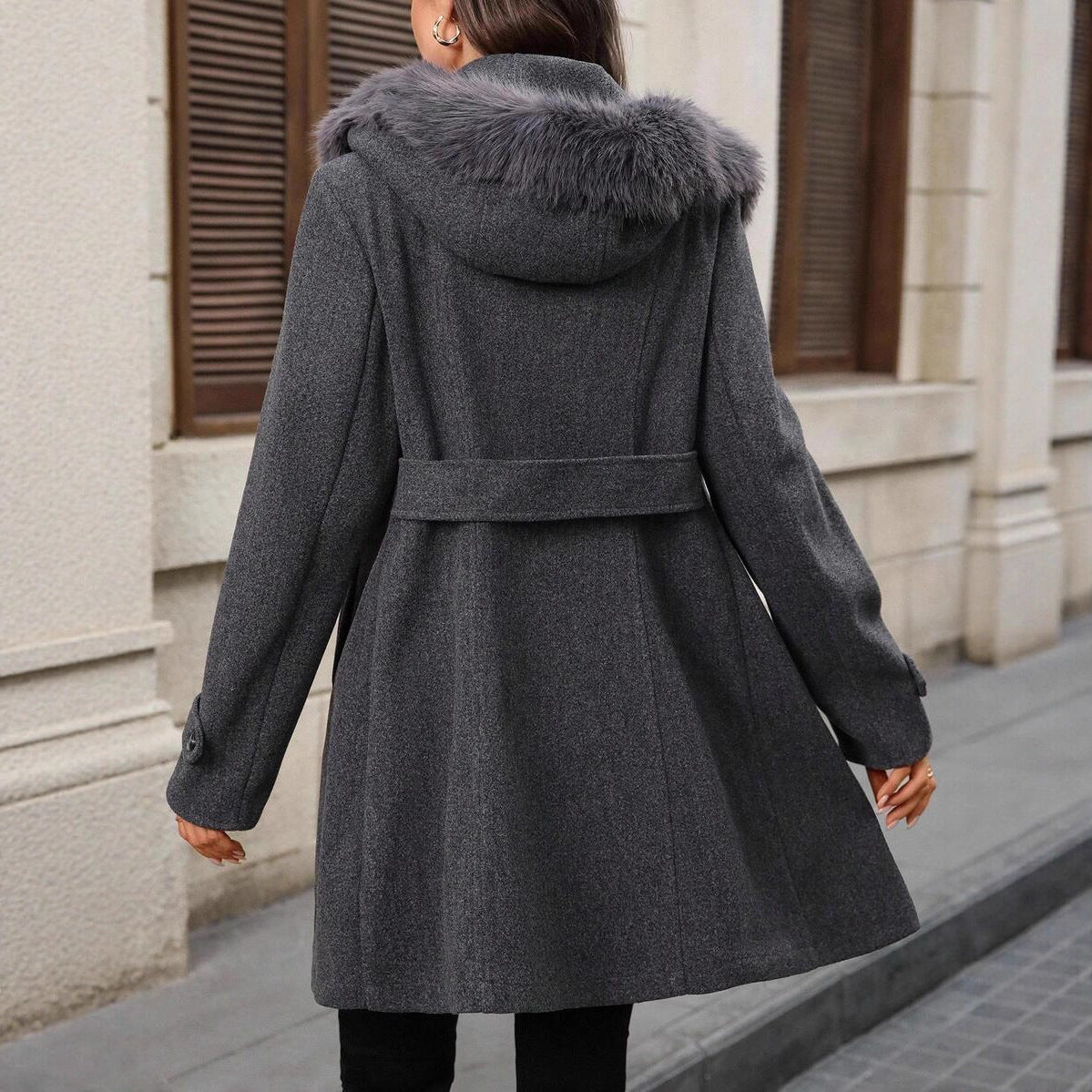 Damen modischer Mantel mit abnehmbarem Kunstpelzkragen und tailliertem Schnitt Fudus