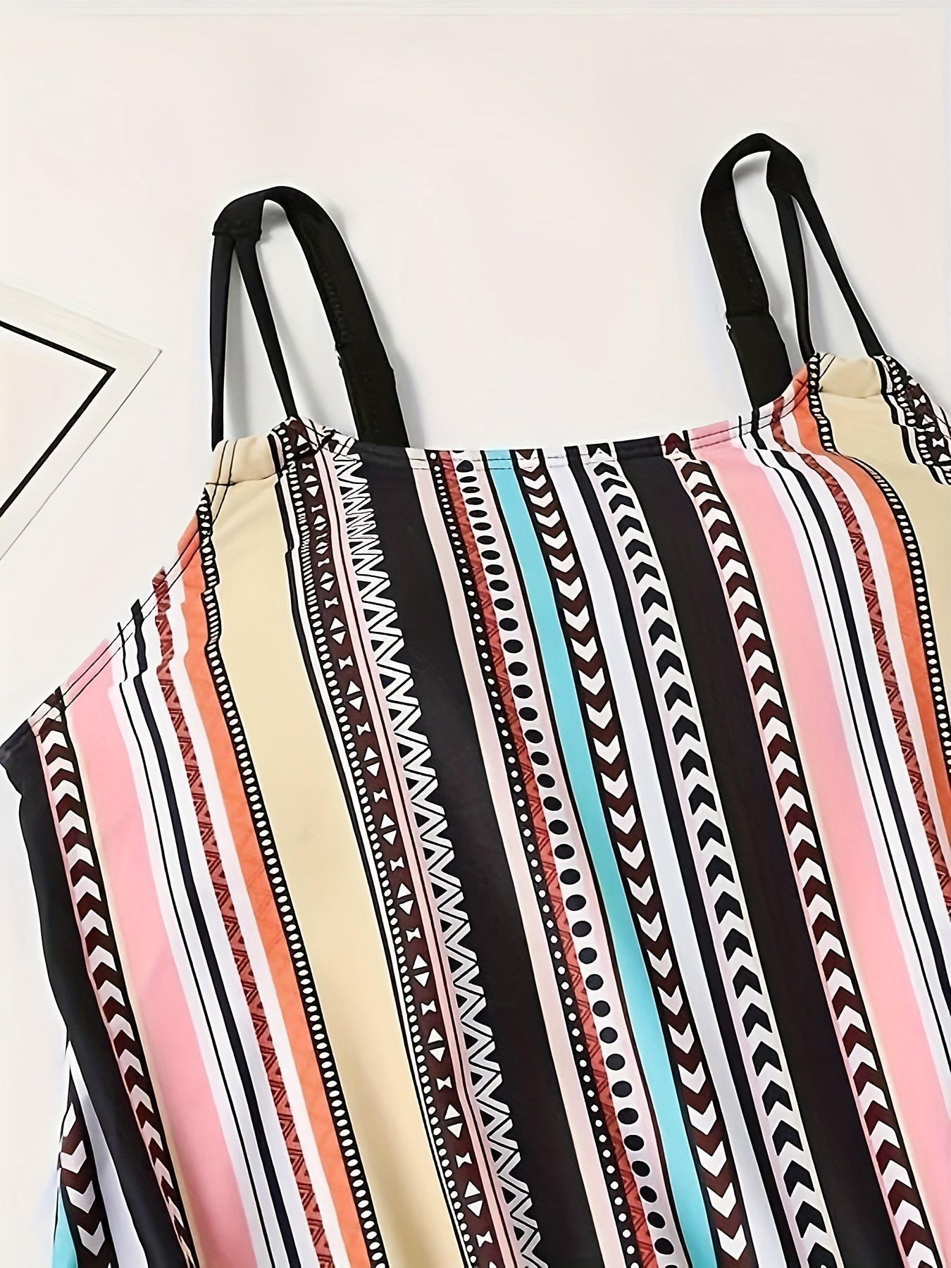 Verleihen Sie Ihrem Strandoutfit mit dem farbenfrohen Muster Tankini Top „Lara“ einen neuen, lebendigen Touch, der Eleganz mit verspielter Note verbindet. Das weiche, schnell trocknende Material sorgt für hohen Komfort und eine schmeichelhafte Passform, unterstützt durch eingearbeitete Cups und verstellbare Träger. Ideal für Schwimmen, Sonnenbaden oder den Pool, ist dieses Top vielseitig kombinierbar und dank robuster Verarbeitung besonders langlebig.