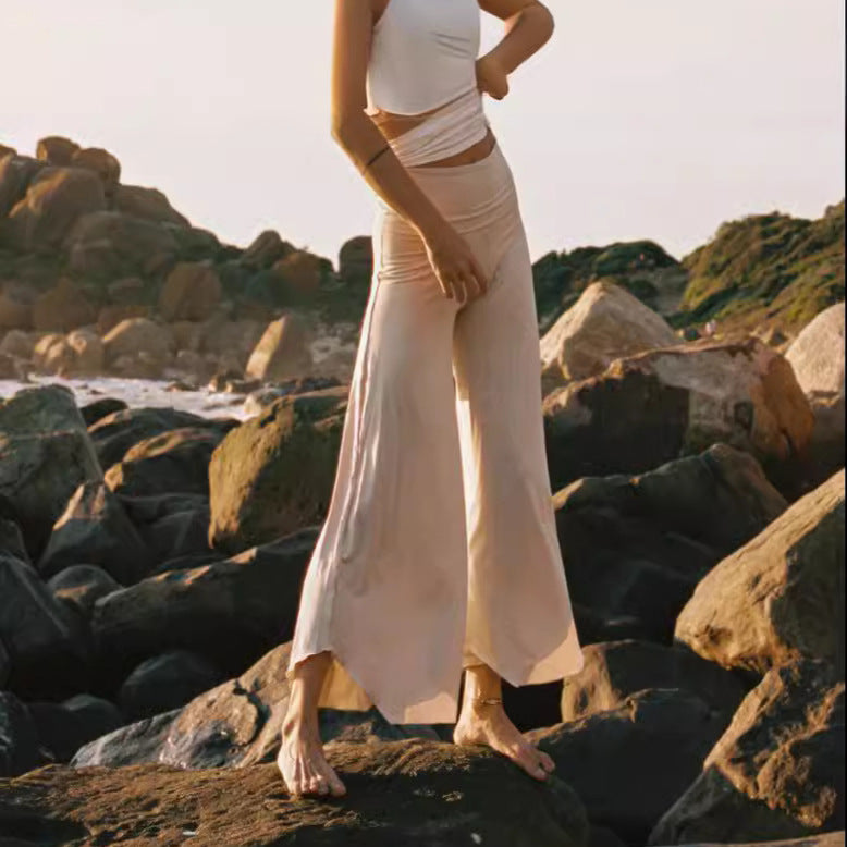 Entdecken Sie diesen perfekten Begleiter für Ihre Freizeit: die Damen Weite Jersey-Hose. Sie ist die ideale Wahl für stilbewusste Frauen, die Komfort und Eleganz miteinander vereinen möchten. Diese Hose zeichnet sich durch ihren großzügigen Schnitt und das weiche, leicht elastische Material aus, das den ganzen Tag über ein angenehmes Tragegefühl bietet. Der bequeme elastische Bund sorgt für eine optimale Passform. Seitliche Taschen sind praktisch für kleine Utensilien. Der weit geschnittene Saum sorgt für einen lässigen Look und ist vielseitig kombinierbar mit lässigen Tops oder eleganten Blusen.
