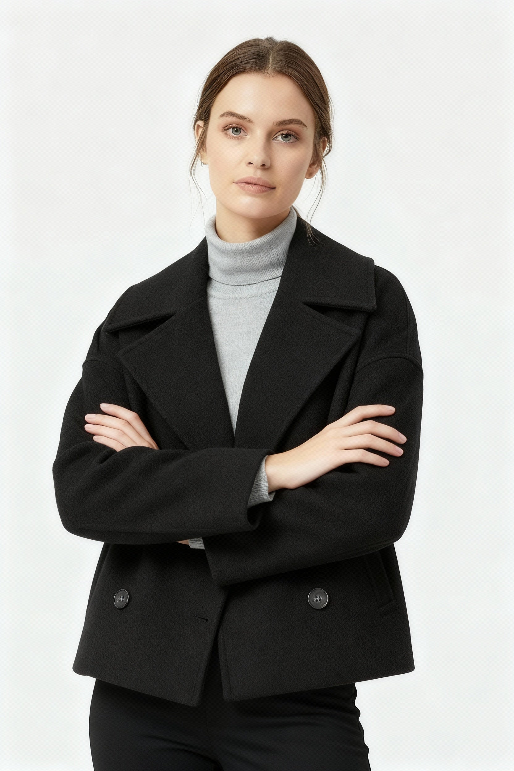 Die Kurzjacke Damen Elegant bietet eine perfekte Mischung aus klassischem Zweireiher-Design und moderner Kurzschnitt-Ästhetik. Sie wurde für Frauen entwickelt, die stilvolle Outfits lieben und dabei nicht auf Bequemlichkeit verzichten möchten. Dank ihrer hochwertigen Materialmischung bleibt die Jacke formbeständig, weich und angenehm tragbar.