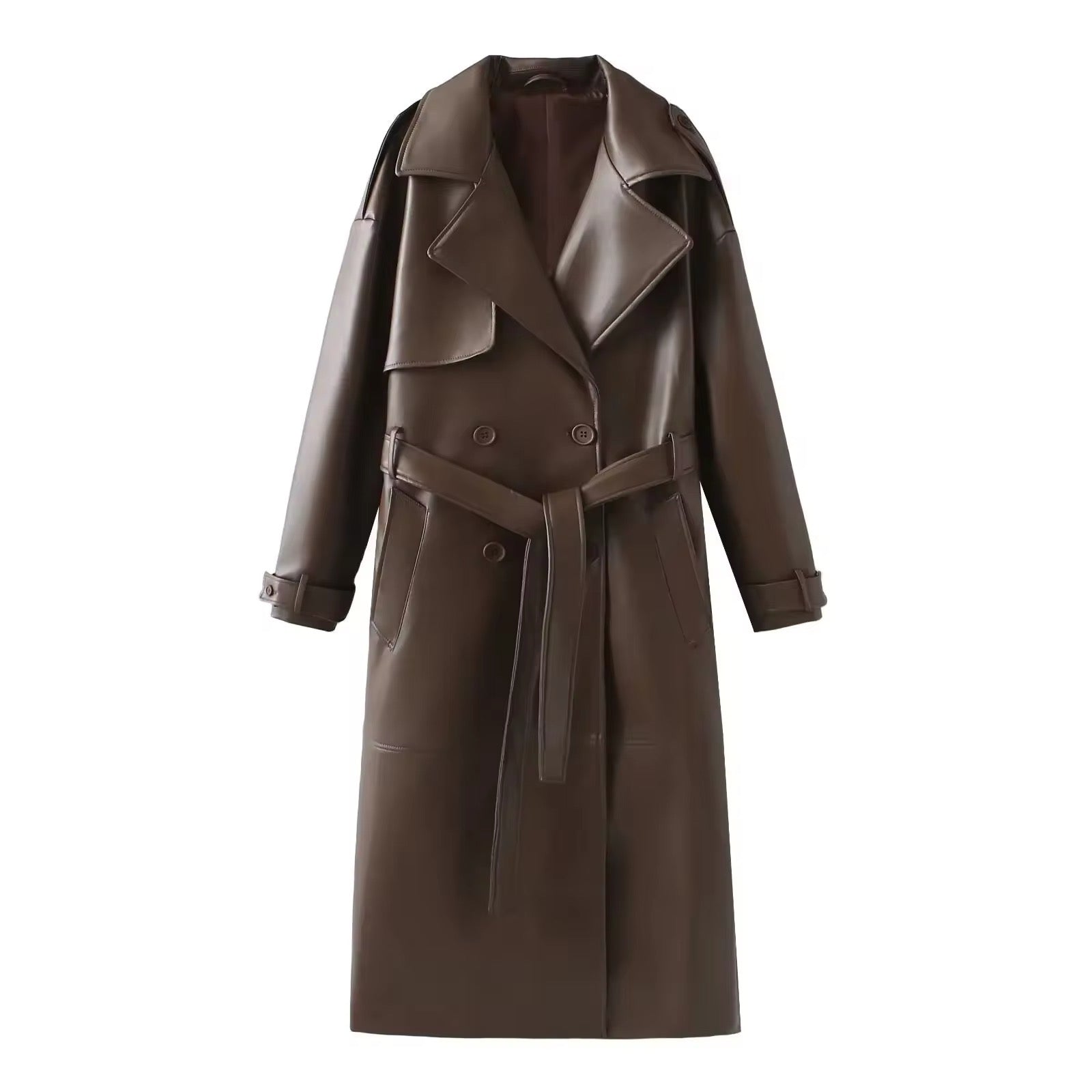 Damen Eleganter Leder Trenchcoat Herbst Chic