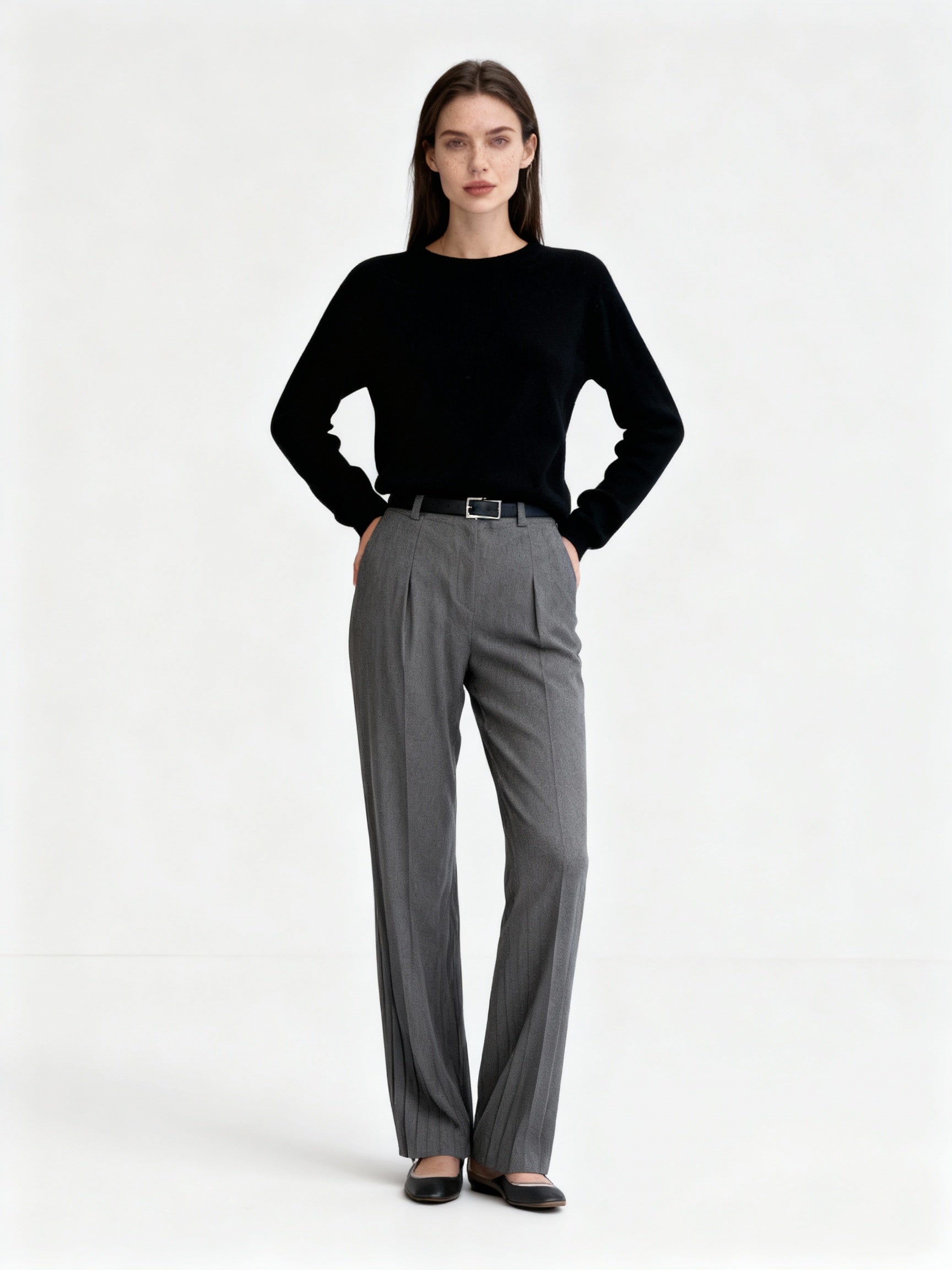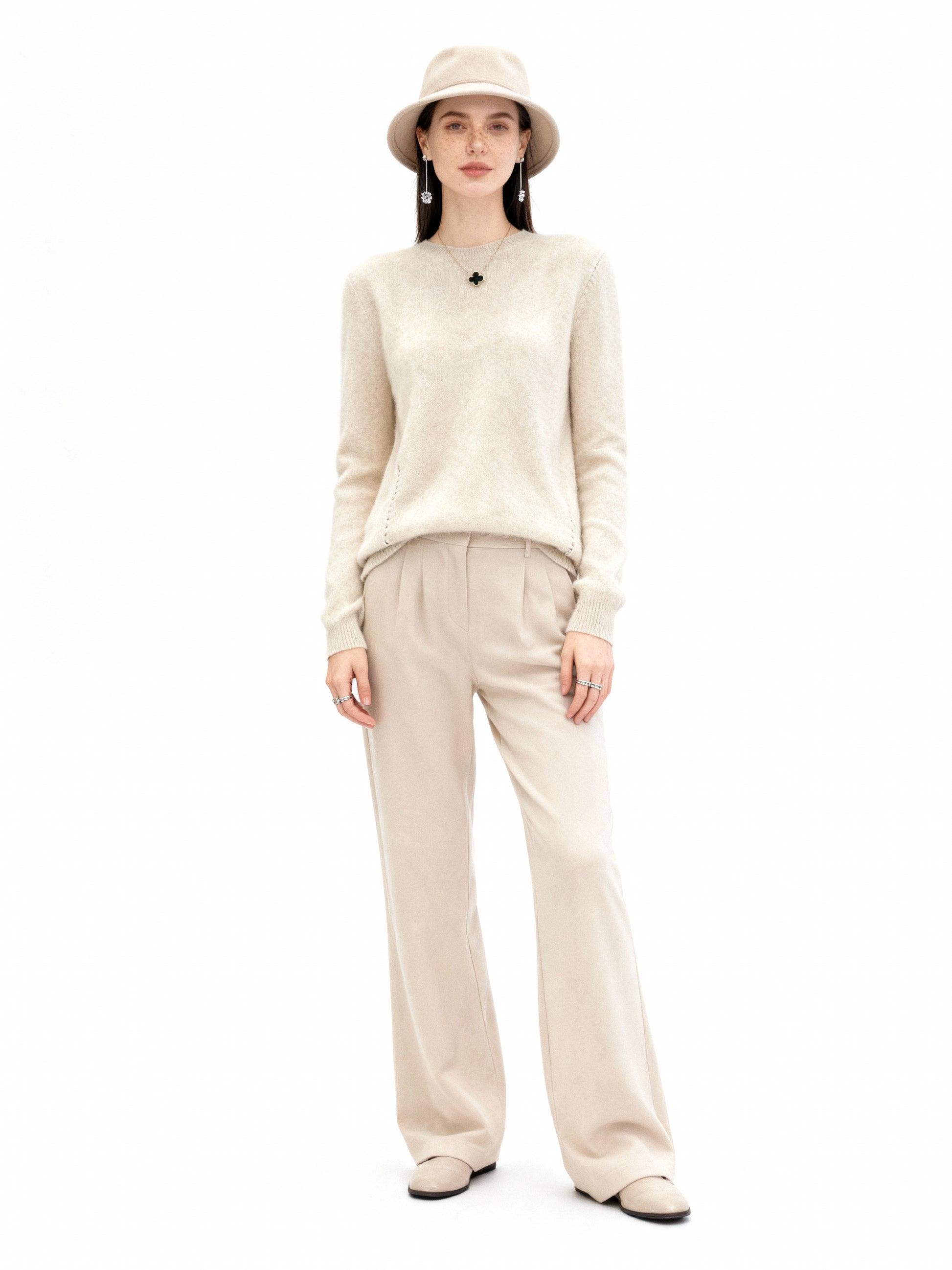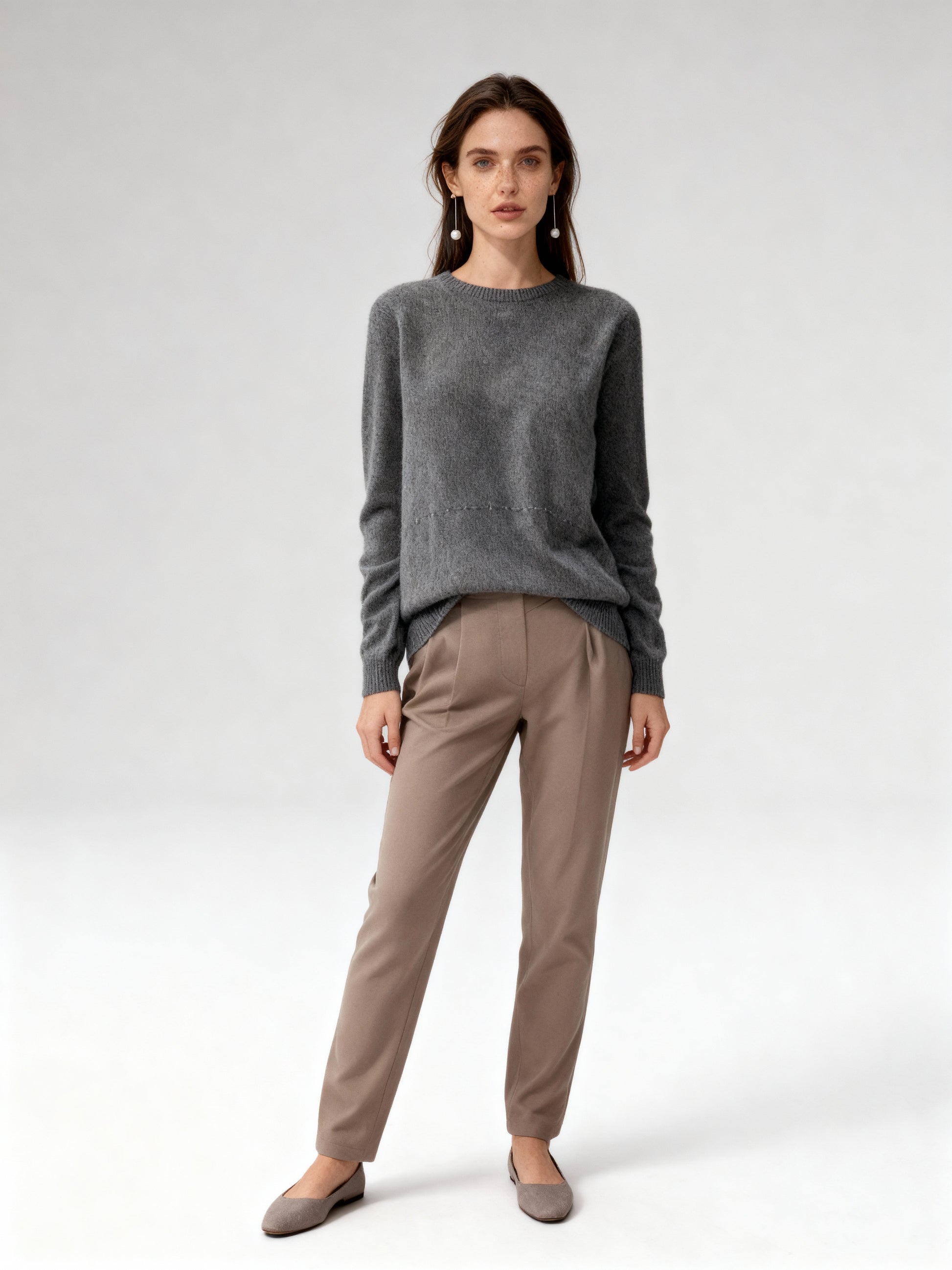 Zeitlose Eleganz: Ein vielseitiger Klassik-Pullover für schlichte bis elegante Outfits.