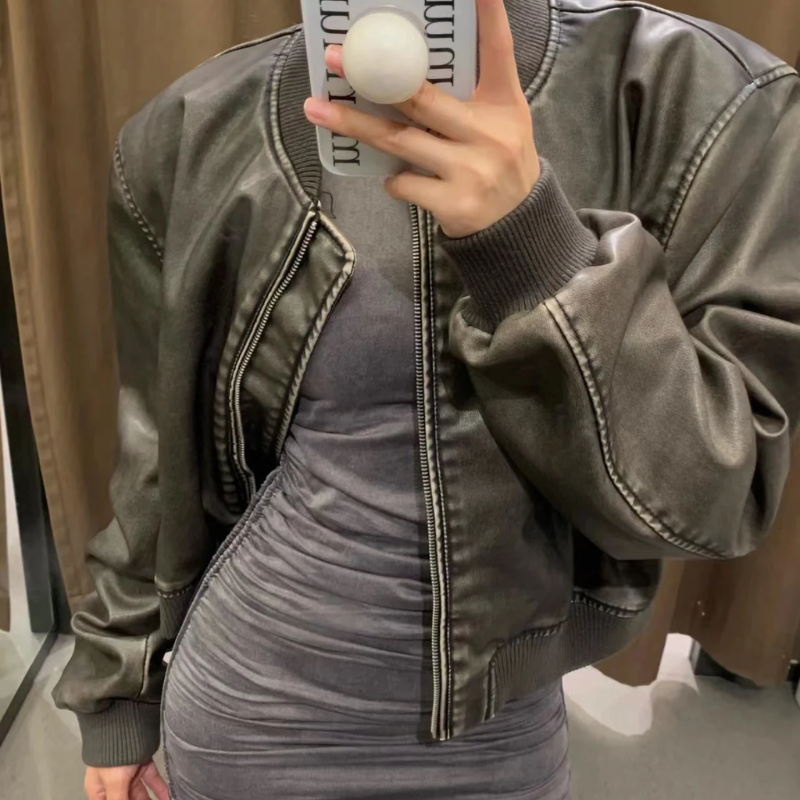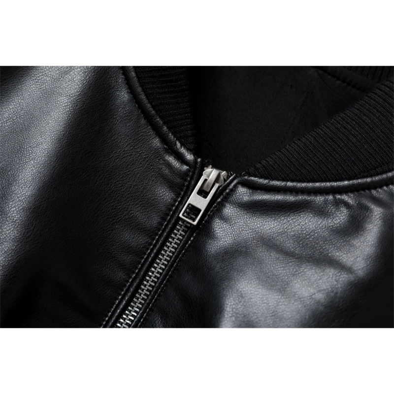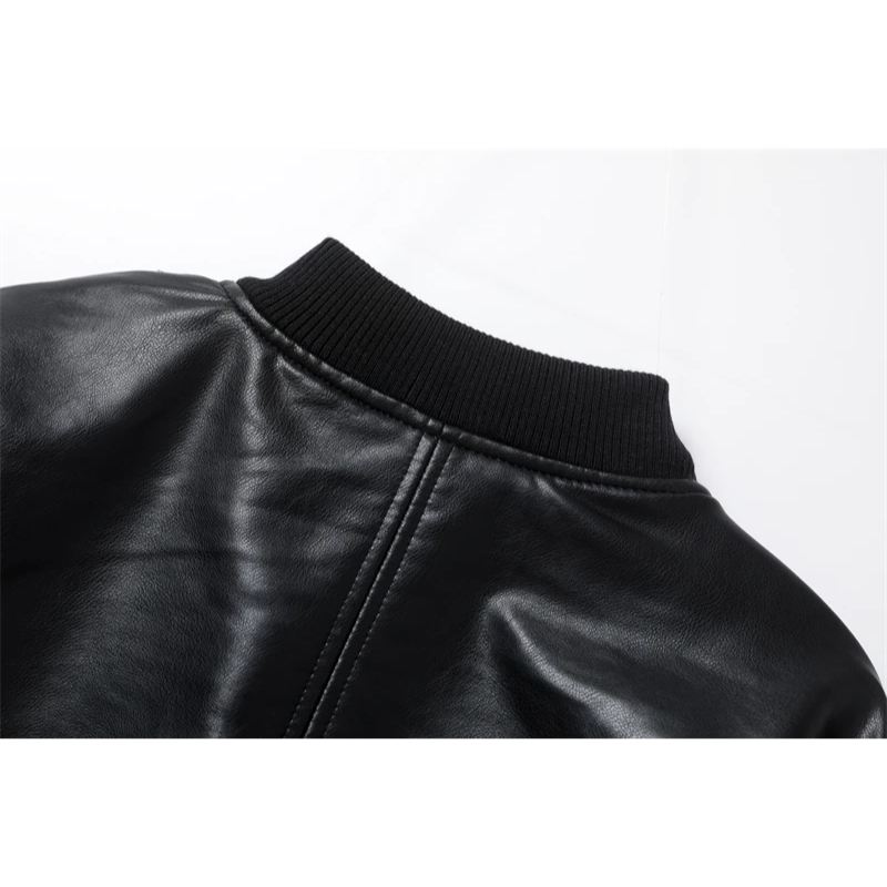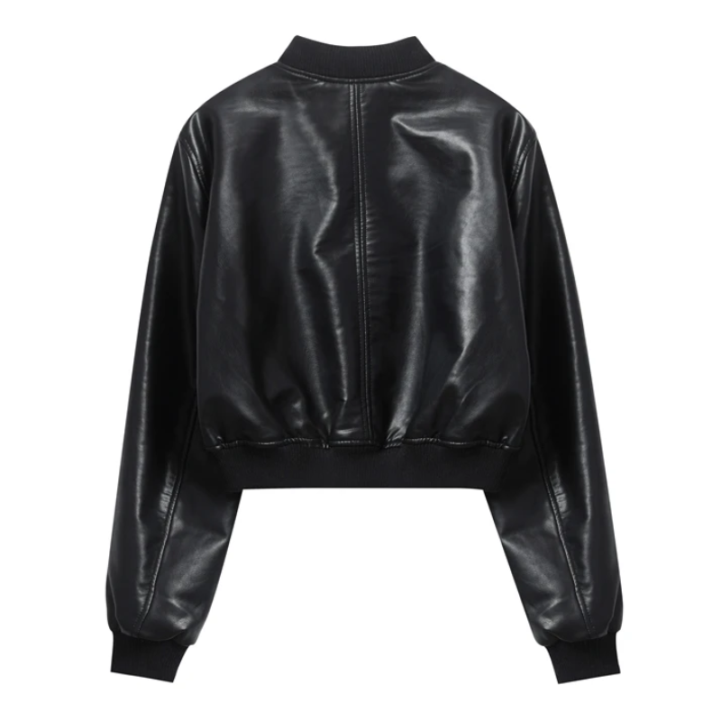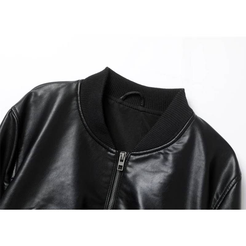 Die Bomberjacke aus hochwertigem Lederlook überzeugt mit gerippten Bündchen und praktischen Reißverschlusstaschen für einen sportlich-modernen Look. Ideal für den Alltag oder als stylisches Highlight über Kleidern und Jeans.