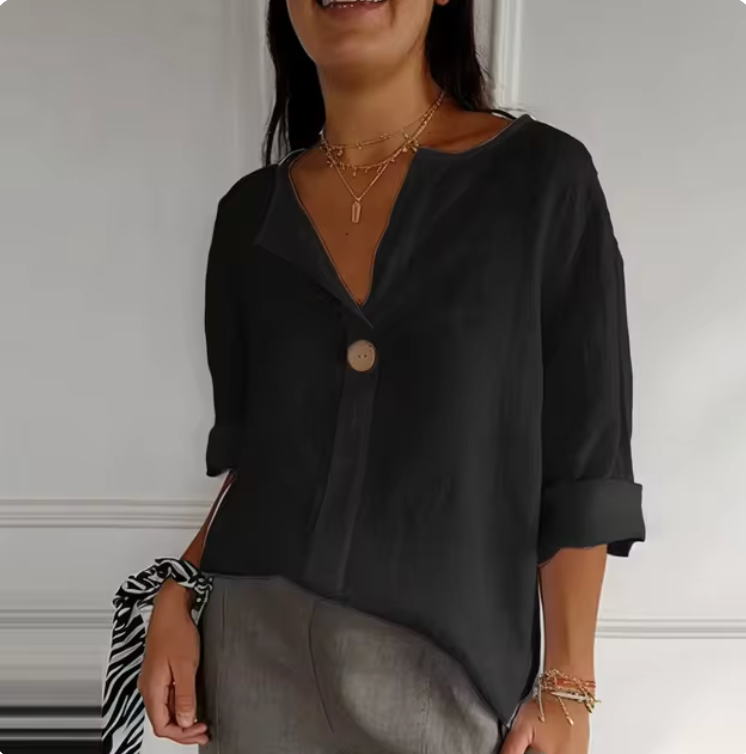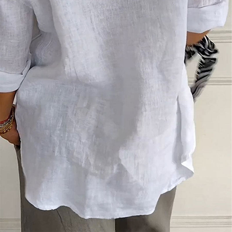 Damen Hemd Leicht Baumwolle Leinen V Ausschnitt Sommer